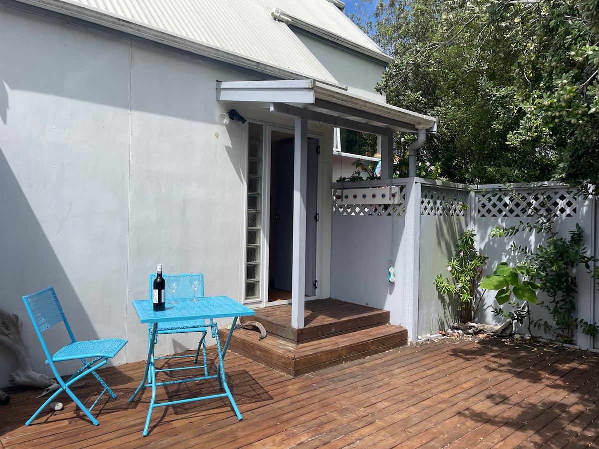 Our studio apartment is totally self contained, with wonderful wooden floors and light streaming in from the garden one looks onto. Perfectly situated a few minutes drive between Havelock North and Hastings and decorated with a Colonial African slant. We always leave muesli, fruit, milk, and croissants in the fridge for our guests to enjoy on their FIRST morning, so they can relax and not have to go out for breakfast. Tea and coffee are always provided.