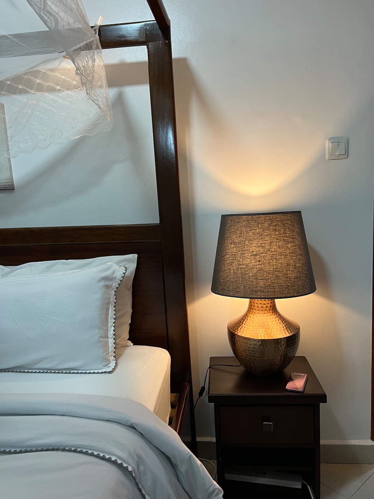 Un refugio cálido y acogedor diseñado para la comodidad y la calma. Con una cama tamaño king, decoración minimalista suave, wifi rápido, Netflix y un inversor para energía ininterrumpida, este espacio se siente sin esfuerzo desde el momento en que entras. Ubicado justo al lado de Bukoto–Kisasi Road, ofrece comodidad y privacidad.