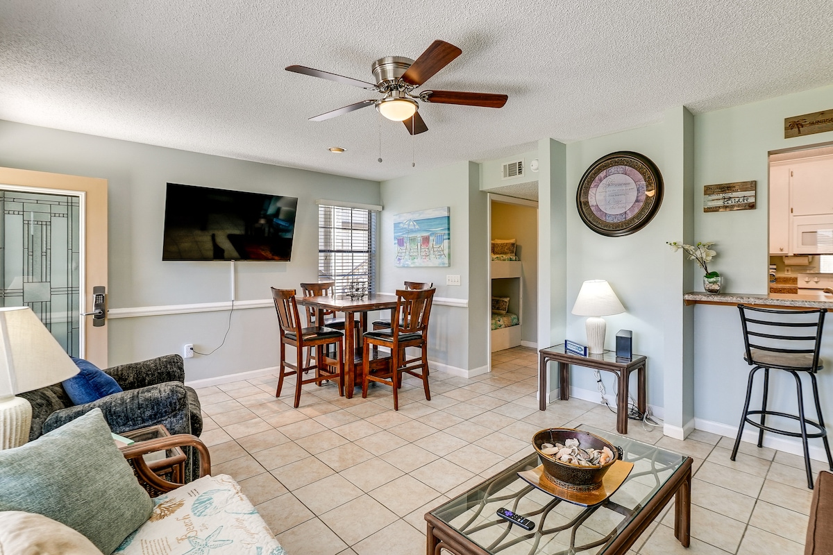 Mi condominio está dentro de Sandestin Golf and Beach Resort. Te encantará mi casa porque está justo al lado de Sandestin Beach, muy bien decorada, muy bien cuidada y con azulejos de madera de porcelana en todas partes. Ofrezco acceso al TRANVÍA, WIFI confiable, Netflix con miles de programas de televisión y películas y sillas de playa y sombrilla y un carrito para llevarlos todos a la playa. Tengo una cama tamaño king y un sofá cama de espuma viscoelástica de gel tamaño queen, una cocina pequeña con microondas, fregadero de cocina y refrigerador de tamaño mediano.