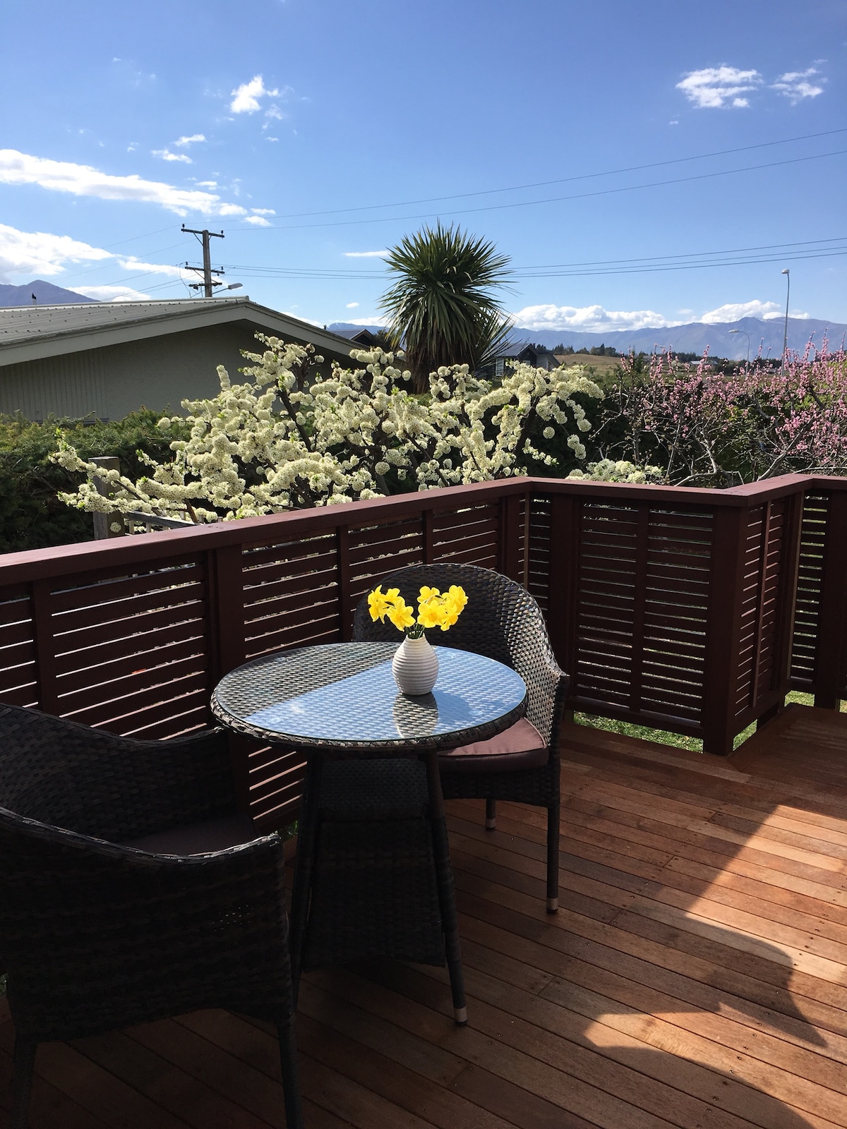 Esta elegante unidad de 1 cama es perfecta para viajeros. Tiene una hermosa mañana al sol de la tarde. Situado en 1 acre, a 3 km del lago Wanaka. Patio privado cubierto que incluye barbacoa, mesa y sillas exteriores. Cocina pequeña con nevera, fregadero, microondas, sartén eléctrica y cafetera. Mesa de comedor, sofá de cuero, TV inteligente, bomba de calor. Cama tamaño queen. Baño con inodoro, ducha, toallero eléctrico, calefactor, secador de pelo. La casa separada del propietario está a 30 m del BnB y tiene una perra Spoodle de 4 años.