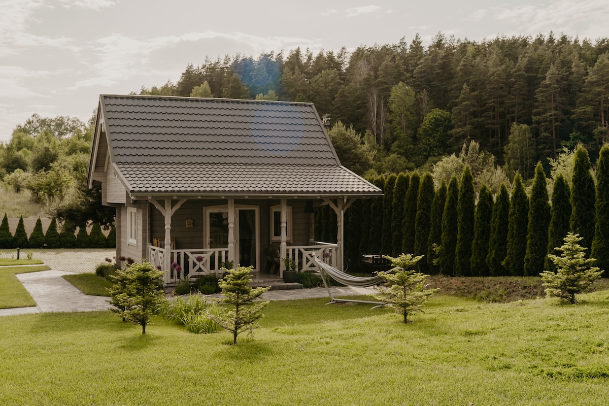 Mi pequeña casa de campo de madera ( 30 m2) , en medio del campo, es particularmente adecuada para familias con niños ( a partir de 5 años, debido a las escaleras algo empinadas hasta el piso superior). Está totalmente equipado con TV de 55 pulgadas, nevera, 2 placas calefactoras, microondas con función de parrilla y muchos platos. Para el uso de bicicletas, sauna y jacuzzi, espero una pequeña donación de entretenimiento. Vivo en el anexo y te ayudaré. Hablo polaco y alemán