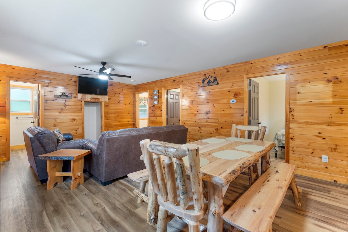 Acogedora cabaña de 2 dormitorios en Adirondacks actualizada en 2021. Completo con cocina completa, baño completo, sala de estar, comedor, terraza al aire libre, chimenea privada, barbacoa de carbón, TV de pantalla plana, aire acondicionado y wifi gratuito. La cabaña es parte de nuestro centro vacacional e incluye el uso de piscina climatizada al aire libre (en temporada), sala de juegos, mesa de billar, ping pong, herraduras, shuffleboard, lavandería para huéspedes y un aro de baloncesto.