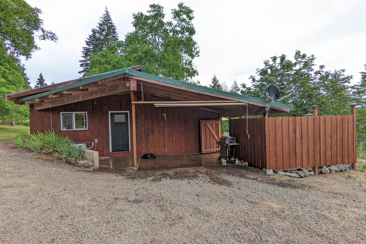 Hermosa casa privada para uso de los huéspedes. Cocina completa. Dormitorio con balcón exterior con vistas al aislado patio trasero. Una cama tamaño king y una cama individual. Barrio tranquilo en una calle sin salida. Entrada codificada con llave a la cabaña. Situada a solo 35 minutos al oeste de Portland. A 1 milla de la parada MAX (tren ligero). Toma la línea roja desde el aeropuerto PDX. Cerca de la región vinícola de Oregón. Cerca de Nike, Intel, Pacific University y a menos de 1 hora de la costa. No se admiten mascotas a menos que el animal de servicio tenga papeles.