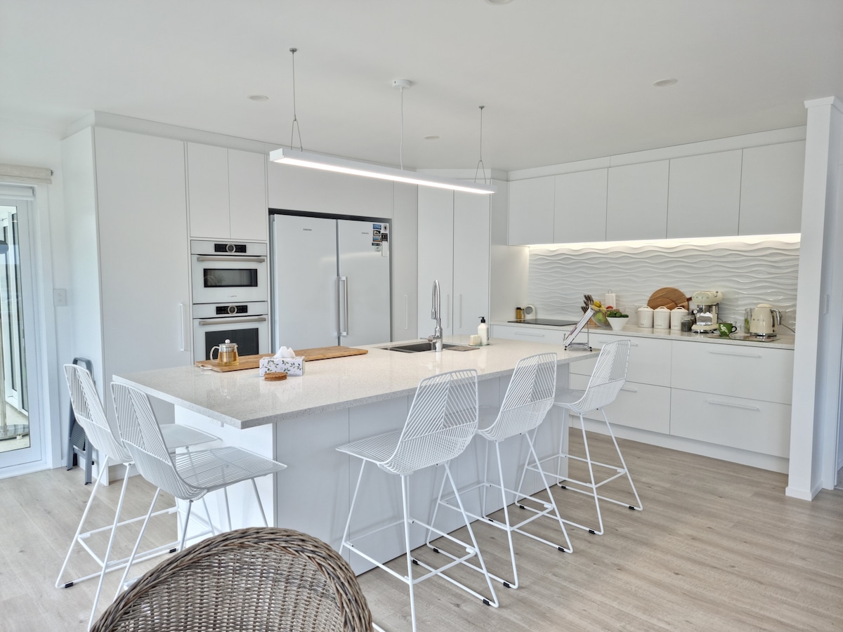Retiro de lujo aislado en el corazón de Martinborough Bienvenido a Regency on Regent, una impresionante casa de diseño arquitectónico que ofrece lujo contemporáneo a solo 4-5 minutos a pie de la icónica plaza de Martinborough. Esta residencia única y moderna, que ha aparecido en NZ House & Garden, ofrece una escapada verdaderamente inolvidable en el corazón de Wairarapa. Las canchas de tenis están al otro lado de la calle (se proporcionan raquetas), es un lugar de ensueño para los amantes del vino, con más de 20 bodegas a poca distancia a pie o en bicicleta.
