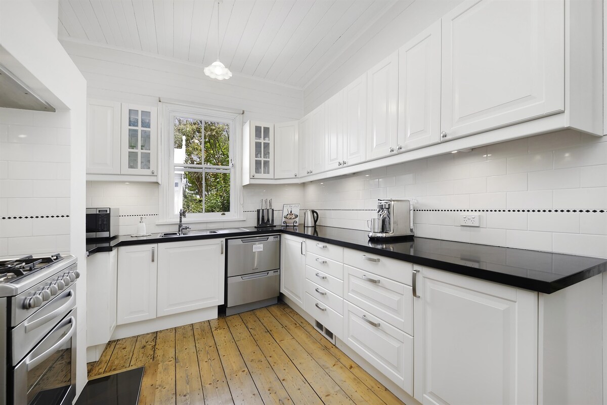 In the heart of the village, 'Katoomba Slow' is a lovingly restored historic cottage offering a peaceful Blue Mountains escape. Ideal for up to 4 guests, it features two queen bedrooms, a beautiful bathroom with a deep clawfoot bath and wet room shower, a cosy pot belly stove, a full entertainer’s kitchen, and a large covered verandah overlooking the leafy backyard. Centrally located, it is just a short walk to town, cafés and the train station.