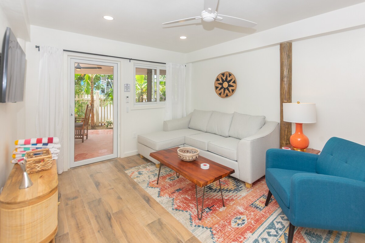 Este acogedor apartamento de un dormitorio en el primer piso se encuentra a pocos pasos de Half Moon Bay Beach y del corazón del pueblo de West End. A poca distancia a pie de tiendas de buceo, comestibles de Woody's, Sundowners y restaurantes. Construcción más reciente con encimeras de granito, electrodomésticos de gas, TV de pantalla plana de 32 pulgadas, cama tamaño queen, lavadora y secadora, cocina completa y un patio son ideales para unas vacaciones relajantes, un viaje de buceo y un lugar al que llamar hogar durante la visita.