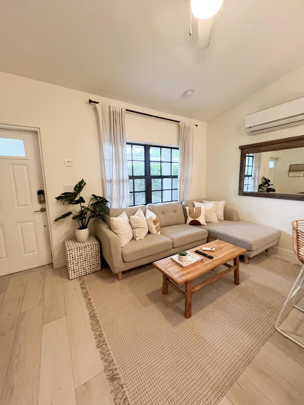 Bienvenido a Calypso Cove, un encantador complejo boutique con 7 villas frente a la playa en West Bay. La unidad de un dormitorio cuenta con una cama tamaño king, un sofá cama tamaño queen y duermen cómodamente 4 personas. A pocos pasos de la arena blanca y el agua clara de Seven Mile Beach, ofrece comodidades como Smart TV, WiFi gratuito, Keurig, Apple TV, Apple HomePod, cargador inalámbrico y un vestidor. Todos los muebles son nuevos, también tiene una cama colgante al aire libre personalizada en el patio para relajarse y disfrutar de su café de la mañana.