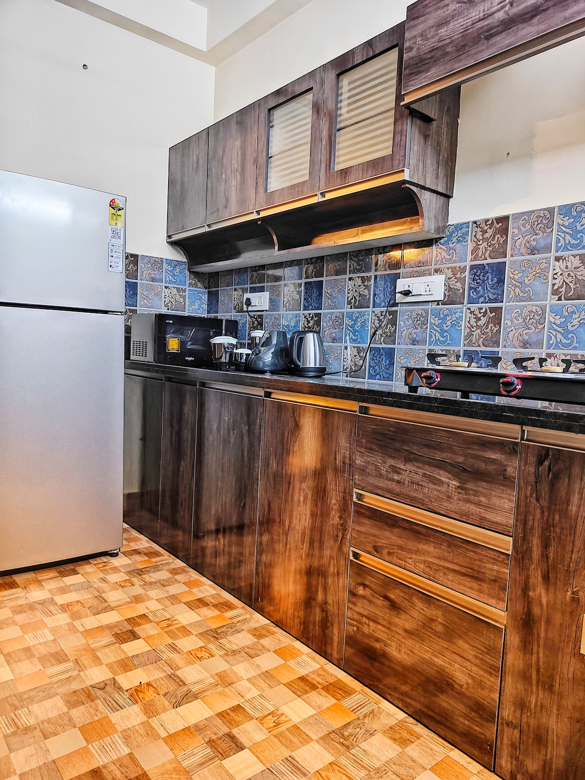 A family-run serviced apartment in a quiet residential lane of West Mambalam, Chennai — just 10-minute walk from the famous shopping streets of T. Nagar. This particular unit is on the ground floor, making it an especially good fit for families with elderly members, young children, or anyone recovering from a hospital visit nearby. Many of our guests are families accompanying loved ones at Apollo, SIMS, Kauvery, or Fortis — and they come back because the kitchen lets them cook home meals.