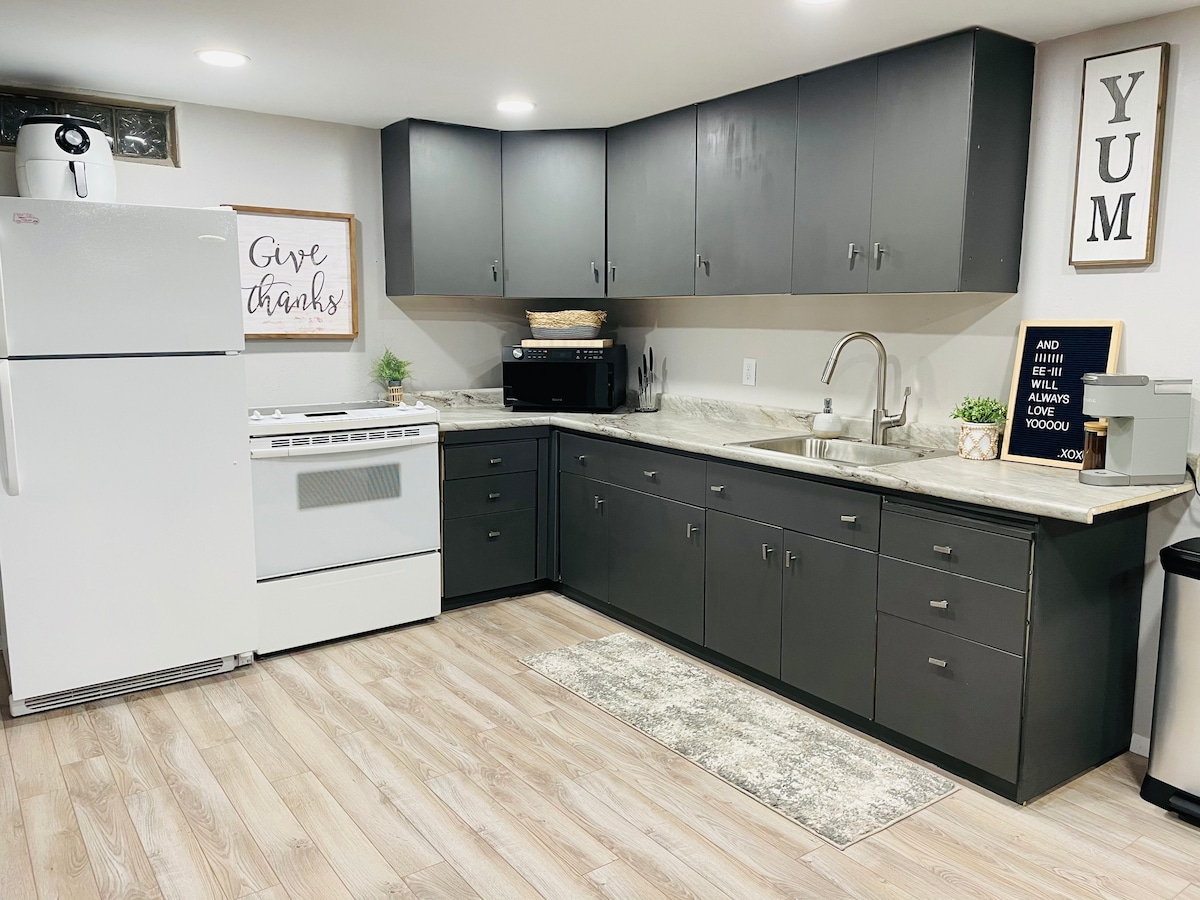 Disfruta de una experiencia elegante en este lugar céntrico. Este es un apartamento completamente renovado de 3 dormitorios y 2 baños, con la capacidad de ser 2 unidades separadas con función de bloqueo. West Lake está al otro lado de la calle con 5 espacios de acceso público disponibles para nadar. Cerca de Abbie Gardner Park y a poca distancia a pie del parque de atracciones, minigolf, restaurantes, tiendas, conciertos de Green Space, fuegos artificiales y entretenimiento en el centro de la ciudad. Aparcamiento en el sitio. Barrio tranquilo. Trabajo externo en curso.