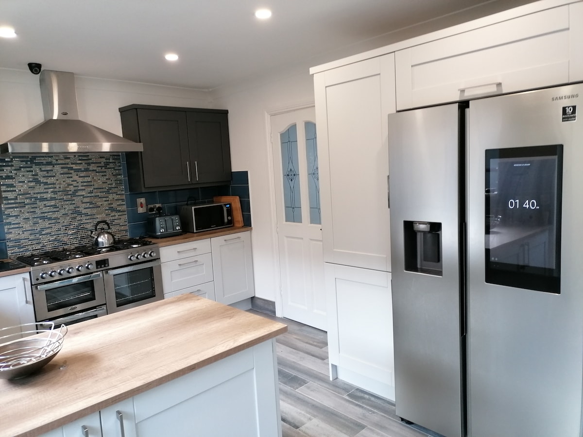¡Esta maravillosa granja, recientemente modernizada, es una GANGA! Disfruta de una bañera de hidromasaje, cama tamaño king, cocina completa, wifi rápido, TV de 45" y proyector con aplicaciones para familias. ¡A solo 7 minutos del campo de golf y la playa de Blackwater! • La calefacción principal es a través de las chimeneas. • Se admiten mascotas (tarifa de 50 € por mascota). Nota: Esta es una propiedad rural en el campo: puede haber animales salvajes o insectos ocasionales a pesar de un mantenimiento regular.
