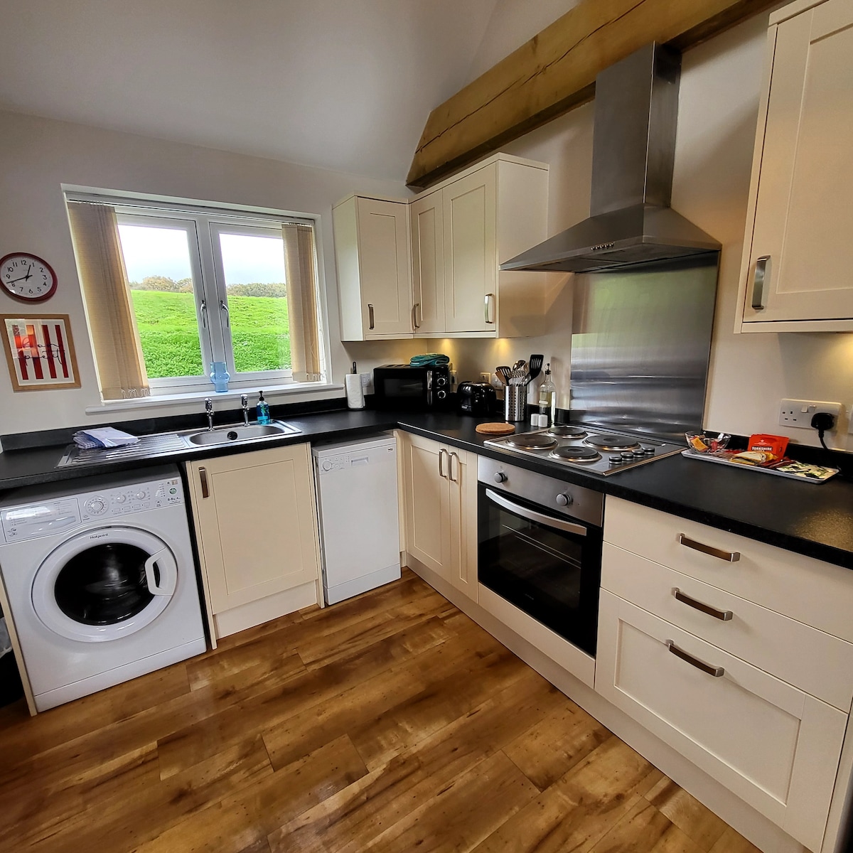 Hop Pickers Retreat se encuentra en el corazón de un Área de Excepcional Belleza Natural (AONB) en la frontera de Kent y East Sussex. Ubicado en una granja, estás rodeado de vida silvestre, canto de pájaros, vacas mugiendo, impresionantes vistas y, en verano, el sonido de una cosechadora, combinando los cultivos en los campos circundantes. Es el lugar ideal para apagar el teléfono y relajarte con tu copa de tu bebida favorita en el jacuzzi de leña bajo el gran cielo estrellado.