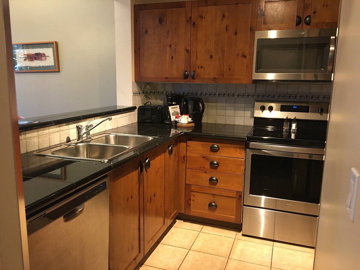 Este es un verdadero condominio de acceso de entrada y salida de esquí en la montaña Blackcomb. Puedes relajarte y disfrutar de tres hot Tops o dos piscinas después de esquiar,practicar snowboard,senderismo,golf o bicicleta de montaña. El Condor está a poca distancia de Upper Village y Whistler Village. También puedes tomar un autobús gratuito a la mayoría de los lugares del silbador. Mi condominio Aspens es de dos dormitorios y dos baños con cocina totalmente equipada. 6 personas pueden dormir cómodamente con una cama tamaño king; sofá cama tamaño queen; dos camas individuales en el condominio.