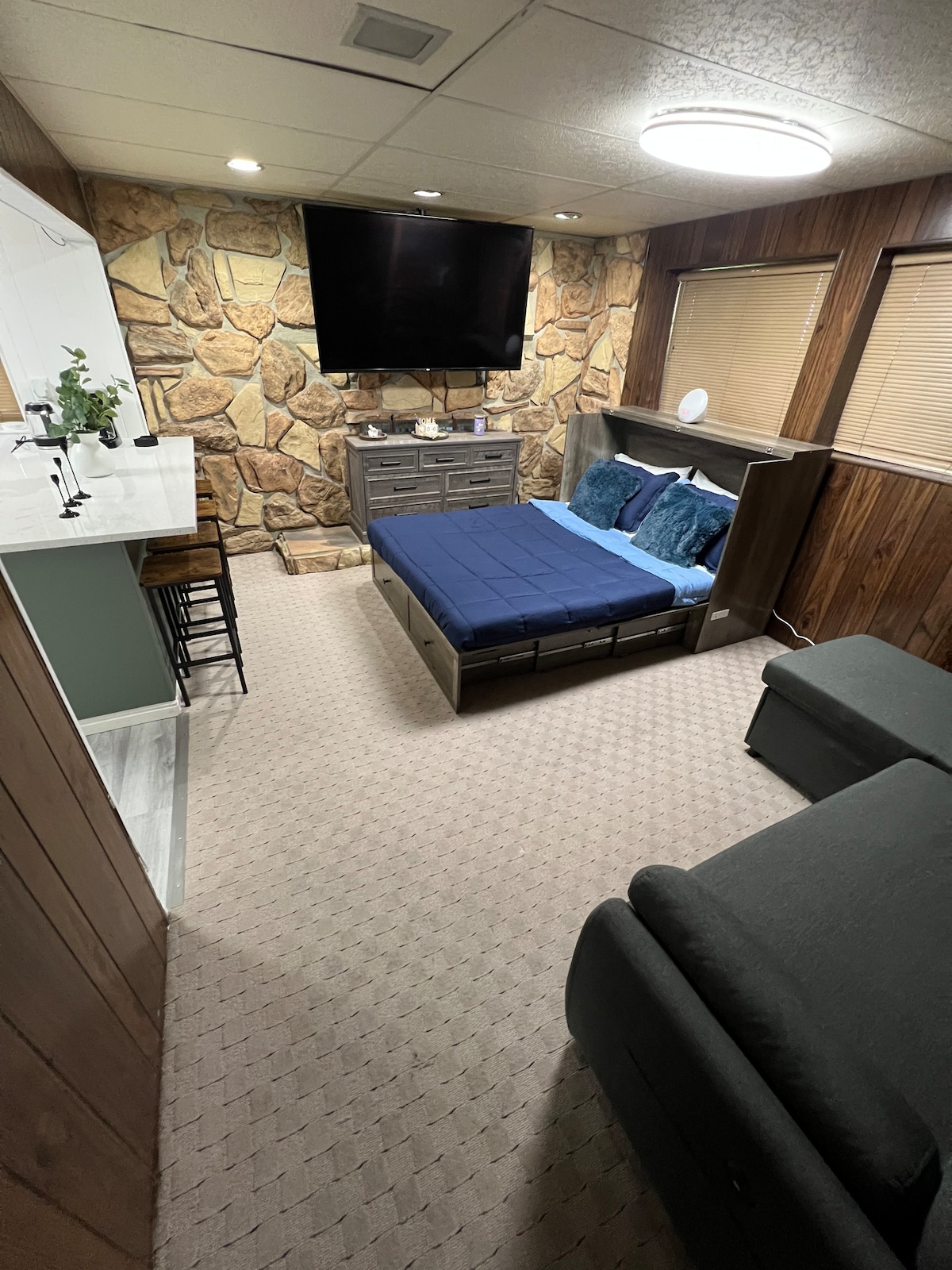 This new modernized studio apartment comes with: ⤷ Huge Gym ⤷ Hot Tub (open all year round) ⤷ Pool (pool is CLOSED for the winter season, it opens up again in May) ⤷ Luxury Clubhouse w/ a Pool Table and Shuffle Board ⤷ BBQ Grills, Gas Firepits, & Pickle Ball Court ⤷ Designated Workspace ⤷ High Speed WiFi ⤷ Full kitchen that comes fully stocked ⤷ Free parking ⤷ Mounted 55" Roku TV giving access to all your favorite streaming apps ⤷ Keurig coffee maker w/ complimentary coffee, creamer & sweetener