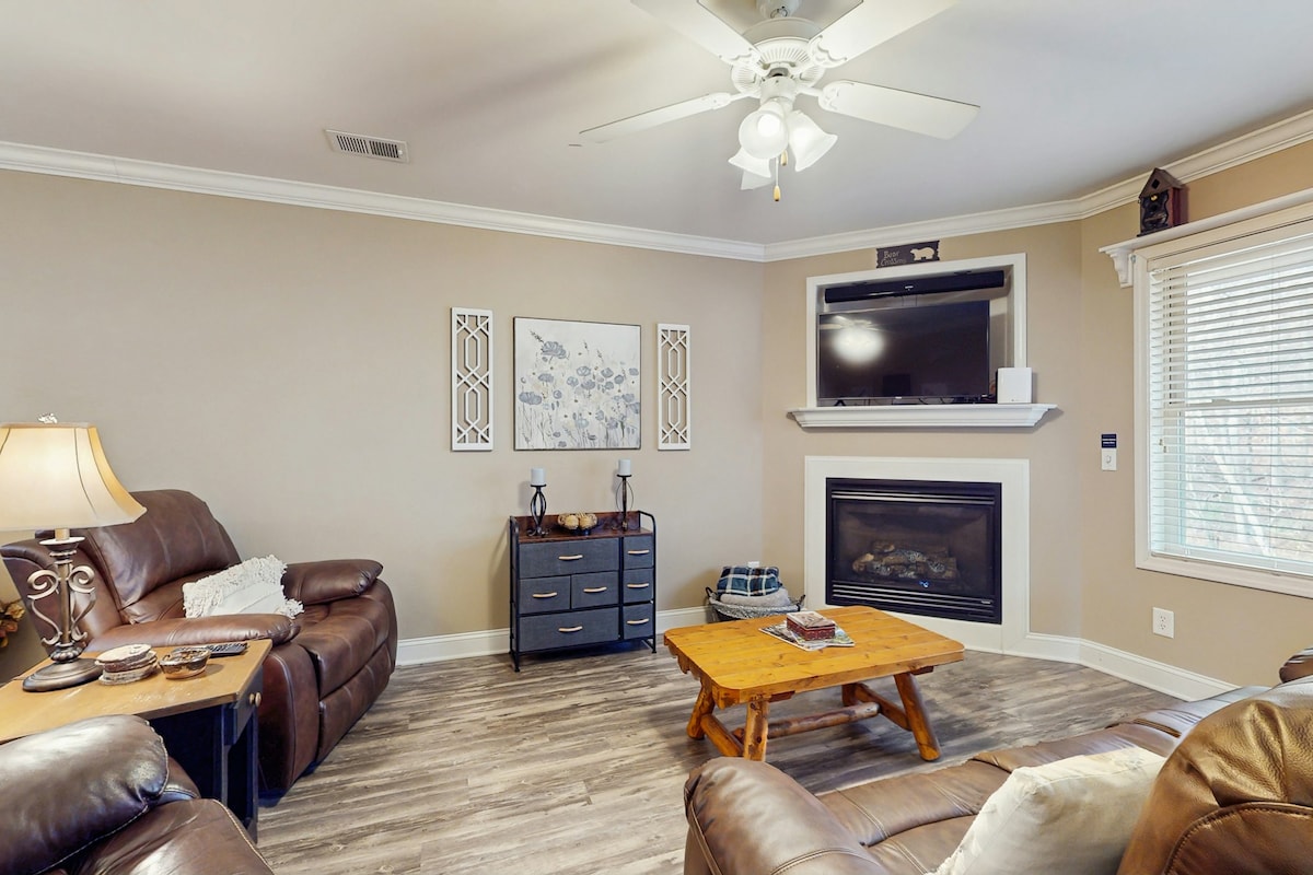 Escápate a este moderno adosado alpino con vistas a las montañas en el centro de Helen. Relájate en el jacuzzi privado en una de las tres cubiertas que rodean este tranquilo refugio. Disfruta de tu bebida favorita alrededor de la hoguera en la terraza trasera mientras todos ayudan a preparar algo sabroso en la parrilla. Las grandes comidas son fáciles de hacer con la cocina de chef totalmente surtida. Después de disfrutar de todas las divertidas actividades alrededor de Helen, visita algunas de las muchas bodegas y cervecerías o los grandes parques estatales del norte de Georgia.