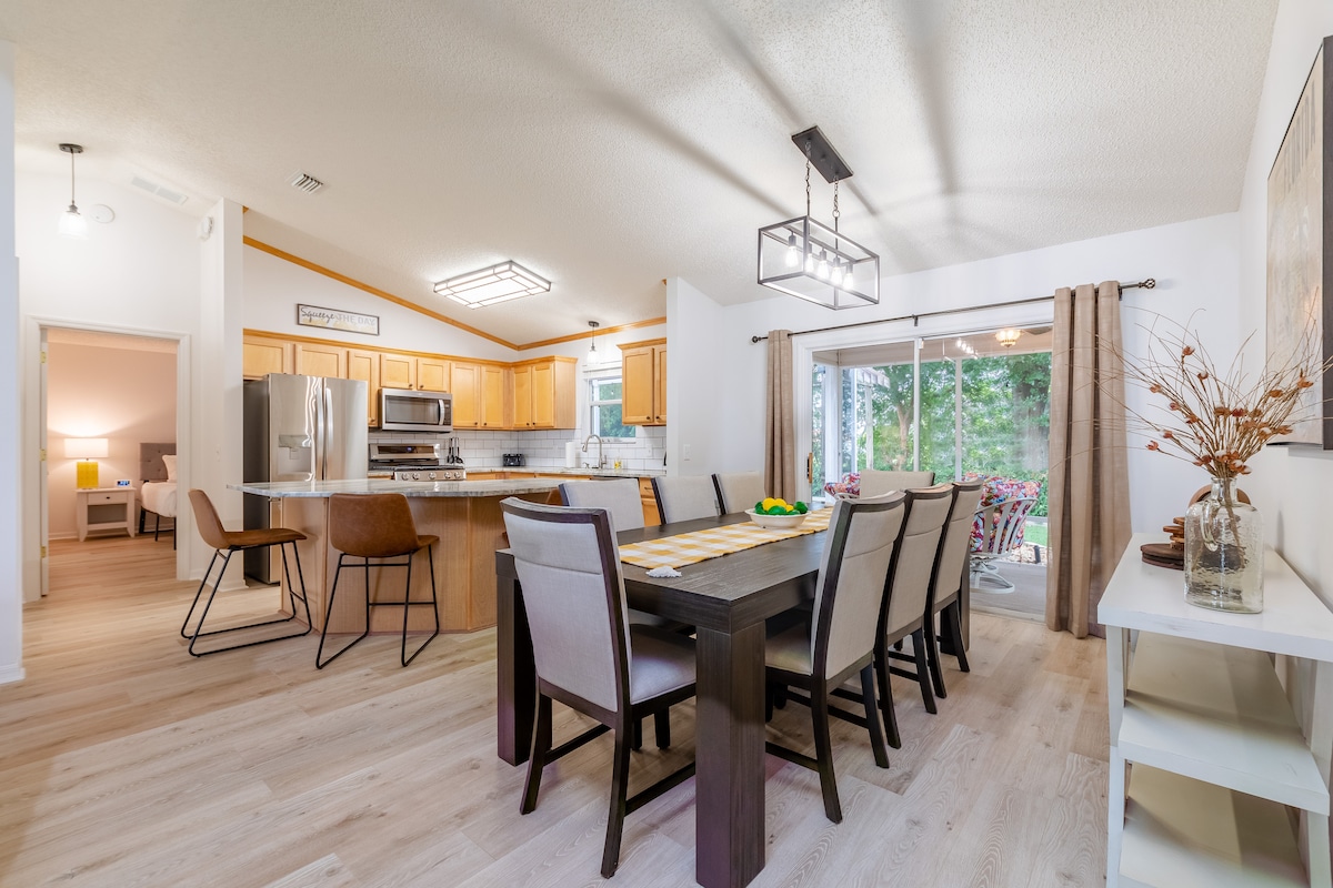 Bienvenido a su tranquilo refugio sobre el agua. Ya sea que usted o su grupo visiten The Villages o simplemente necesiten una escapada tranquila para recargar energías, ¡este es el lugar ideal!¡Hay algo para todos! Practique paddleboard o kayak (se proporcionan) por el hermoso canal hasta cualquiera de los dos lagos. Disfrute de su café matutino o de su cóctel vespertino en medio de la naturaleza, en el muelle. Traiga su embarcación/moto acuática o alquile una en Eaton’s Beach Aquatic Sports. Además, ofrecen cruceros al atardecer y taxis acuáticos hasta el restaurante Eaton’s Beach directamente desde nuestro muelle.
