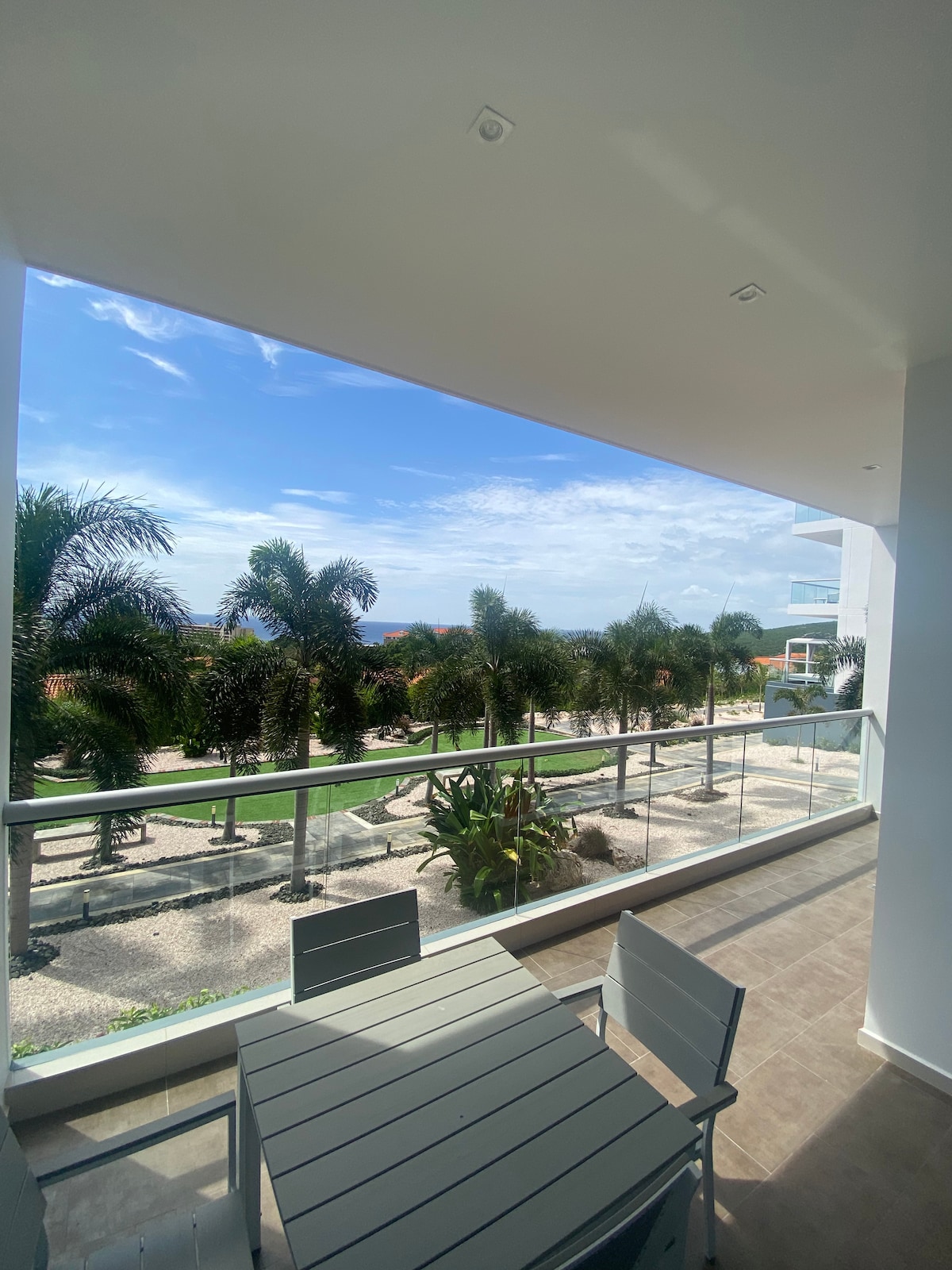 Este apartamento está en el primer piso y tiene un gran balcón con una hermosa vista del mar azul. La playa está a poca distancia. El diseño es perfecto para pasar un rato agradable a solas, con dos personas o en grupo o en familia. La ubicación es muy céntrica en la isla y cerca de la playa de Mambo. También punda, restaurantes y el supermercado están cerca. Hay una vista de 360 grados con mucho viento. Tiene suficiente privacidad y es seguro. Si necesitas un auto, solo tienes que avisarnos.