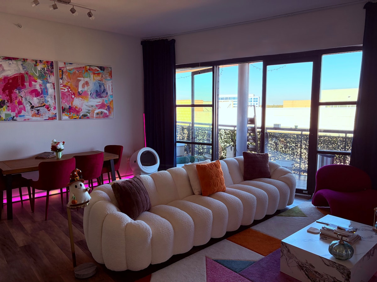 ¡Experimenta el pintoresco y transitable distrito de Old Town Leander en un Airstream vintage actualizado con buen gusto pensando en tu comodidad! «The Cowgirl» es linda y atrevida, decorada con puertas de salón vintage, fotos del Viejo Oeste, puerta corrediza de granero, suelos de pino y vaqueras rebeldes en las cortinas, cada detalle cuidadosamente planeado. La cocina equipada tiene fregadero, cocina de gas, microondas, nevera y cafetera Keurig. Ducha de tamaño completo, agua caliente, inodoro y lavabo en el baño. Zona de escritorio para trabajar. Un taburete de bar en la cocina.