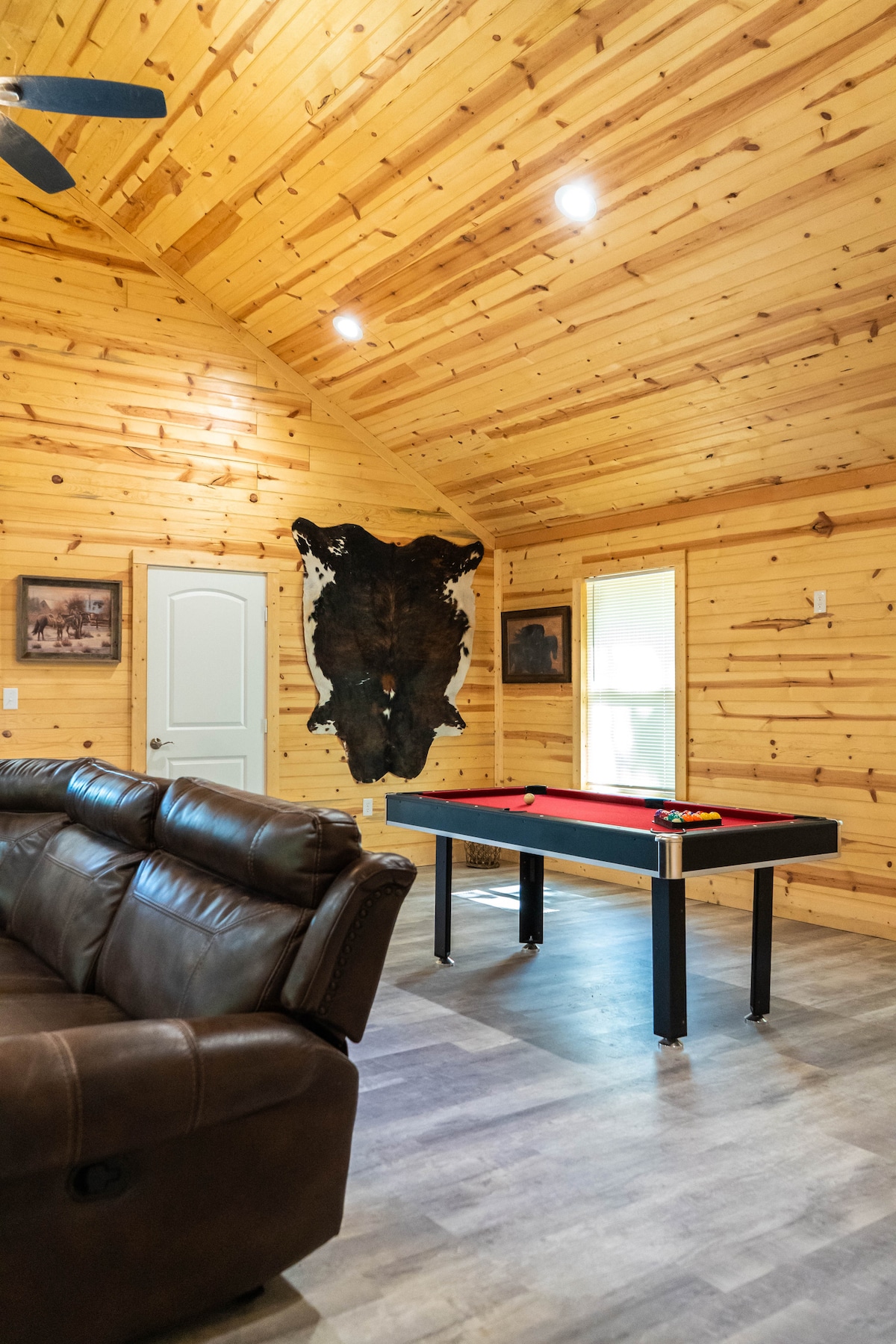 ¡Escápate a nuestra encantadora cabaña en 2 acres cerca del lago Texoma! Perfecto para familias o amigos, cuenta con 1 dormitorio privado, además de un loft y espacios para dormir adicionales para 9, una cocina totalmente equipada, un acogedor espacio de estar y juegos. Hay wifi y televisión inteligente disponible en el interior o desconéctate y disfruta de hamacas, mesas de picnic, una fogata y diversión al aire libre. A minutos de pesca, playas, puertos deportivos, golf, restaurantes y casinos. El check-in sin restricción de horario, el estacionamiento y una guía local hacen que tu estadía sea fácil y memorable.