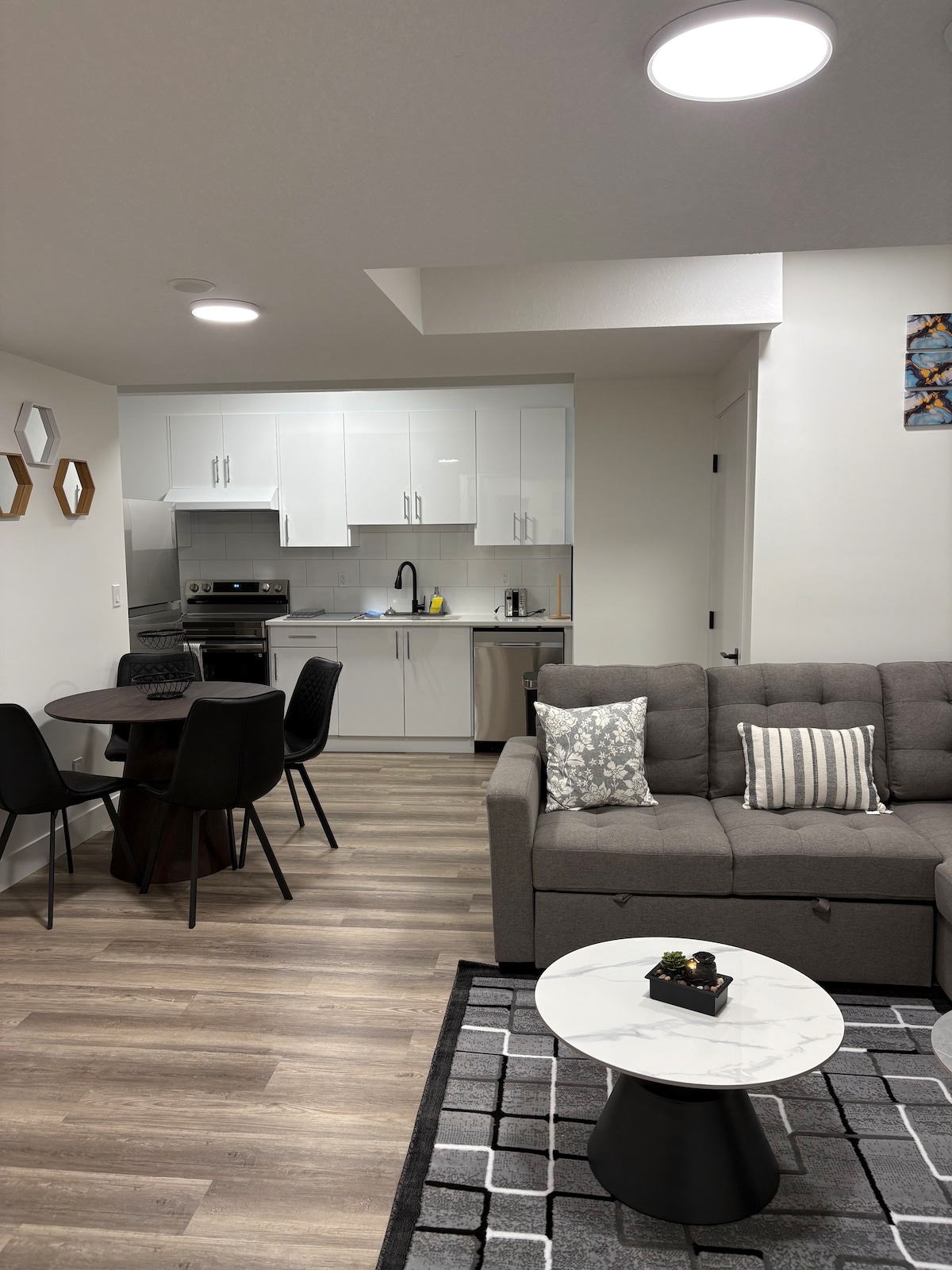Esta acogedora suite en el sótano de 2 dormitorios es un refugio tranquilo que combina la comodidad moderna con un ambiente relajante. Ubicado en un sótano tranquilo, es el lugar perfecto para relajarse, con abundante luz natural, decoración elegante y un ambiente relajante. Ya sea que estés disfrutando de una noche de cine en la sala de estar o descansando en las tranquilas habitaciones, este espacio ofrece el equilibrio perfecto de privacidad y comodidad. Una verdadera joya oculta, está diseñada para hacerte sentir como en casa.