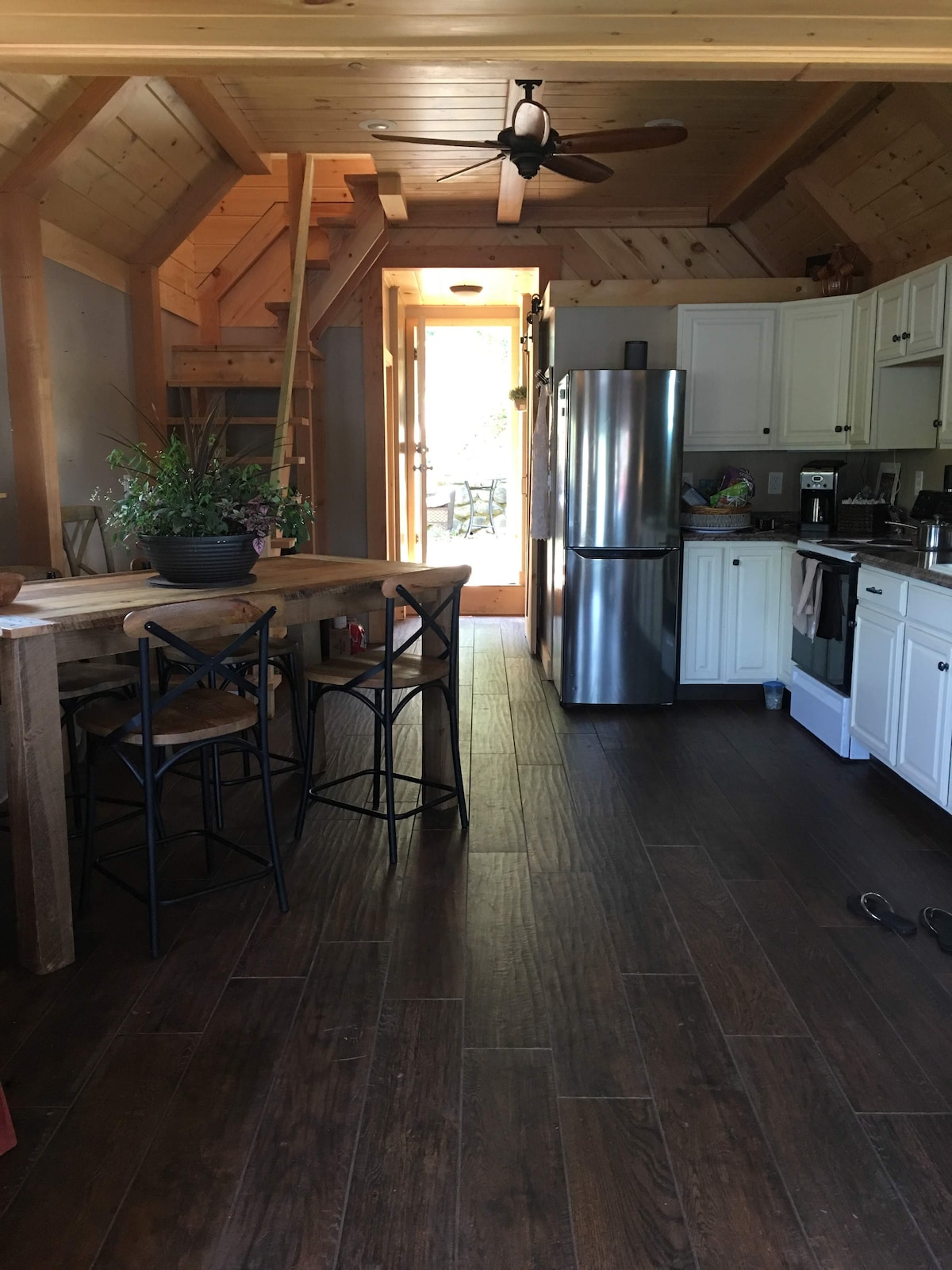 Encantador departamento abierto con un dormitorio loft. Suelos de madera, vigas de granero, mostrador de bloques de carnicería, cocina de cocina completa, baño privado, techos abovedados, como parte del renovado Raynes Farm Barn original. Este apartamento está limpio, privado y aislado, con llegada autónoma y mucho espacio exterior para disfrutar. Ubicado a cinco minutos del centro de Exeter (con muchas opciones de comida para llevar/entrega) en un entorno rural idílico, terreno de conservación vecino de más de 100 acres y una gran red de senderos boscosos.