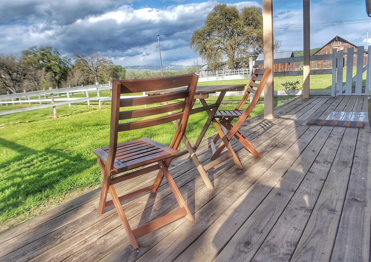 Nuestro estudio de campo de planta abierta tiene preciosas vistas a nuestro huerto de nueces, granero histórico y campos. Disfruta de la puesta de sol sobre los viñedos vecinos desde tu terraza privada. Estamos a una milla por carretera de un encantador parque estatal, eso si alguna vez quieres salir de nuestra tranquila granja. También hay bodegas, rutas de senderismo por un volcán inactivo y el lago más grande y antiguo de California. Nuestra granja aparece en el número de septiembre de 2022 de la revista Sunset. ¡Échale un vistazo!