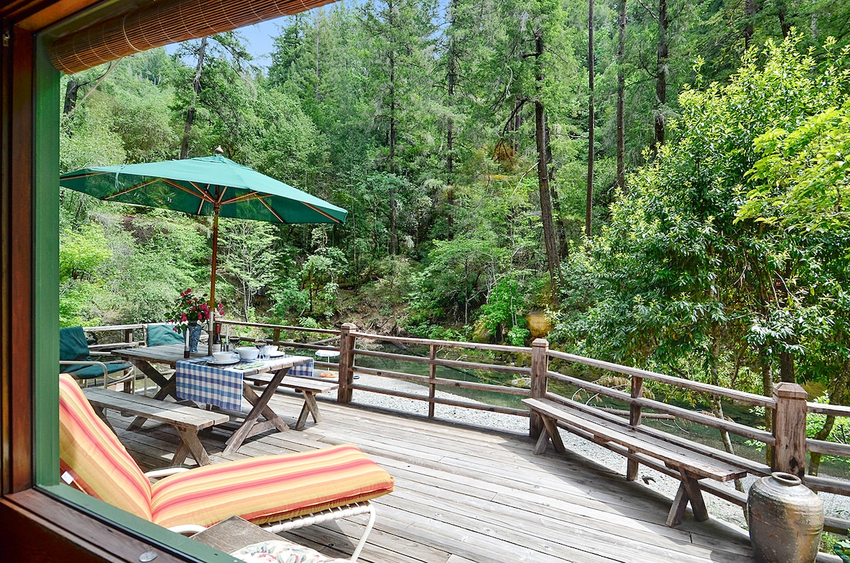 Nuestra casa de campo limpia, acogedora y tranquila se encuentra en la costa de Mendocino, a solo 1,5 millas del océano Pacífico, en 13 acres de jardines, prados y bosques de secuoyas en una hermosa zona rural, cerca de playas, ríos, senderos, Mendocino y Anderson Valley. La casa de campo incluye un dormitorio queen, bañera y ducha, cocina, sala de estar, terraza con tumbonas y barbacoa, y una hamaca en la propiedad, jardines, prados y bosques. A los huéspedes les encantan los exuberantes alrededores, la paz y la tranquilidad: un refugio ideal. Ideal para familias y LGBT.