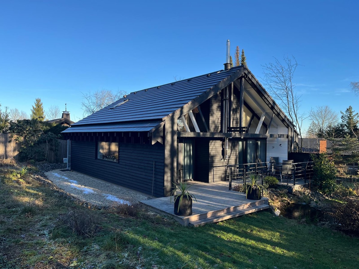 Design-Chalet mit Seeblick, Sauna, Kamin & Jacuzzi