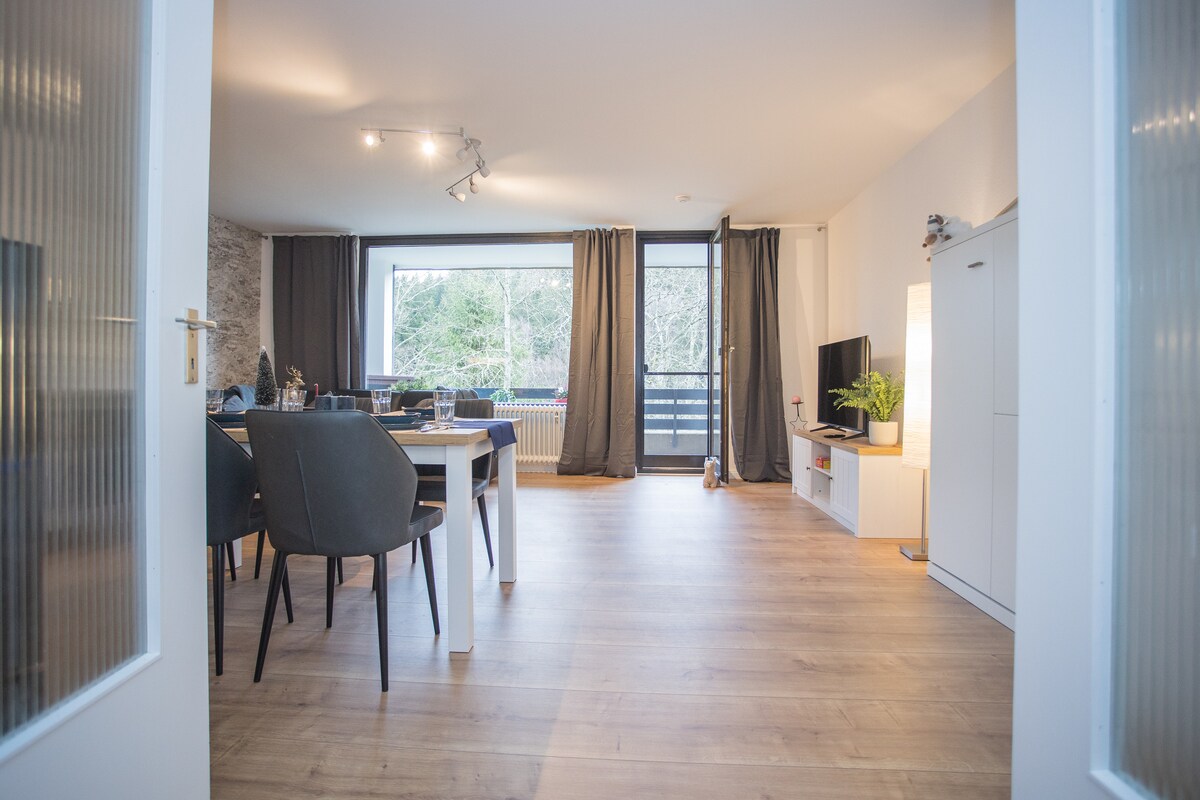 Welcome to our beautiful apartment in Winterberg! This cozy and newly renovated apartment can accommodate up to 4 people and is located directly at the ski slope and bike park. The location is perfect for those looking for central accommodation near the main attractions. . private sauna . private balcony with hammock . newly renovated 2023 . 100m to the bike park/ski slope . fireplace (elect.) . King size box spring bed . free, fast WIFI . Bicycle/ski cellar
