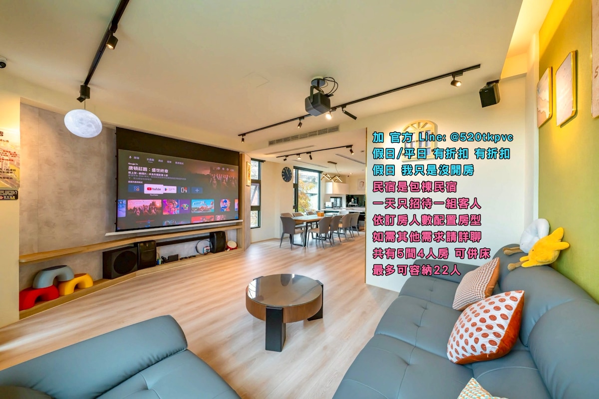 水景璞堤~獨棟4+1房18人/平日6人包棟/100寸唱歌/電麻桌/飛鏢機/Switch/桌遊/烤肉