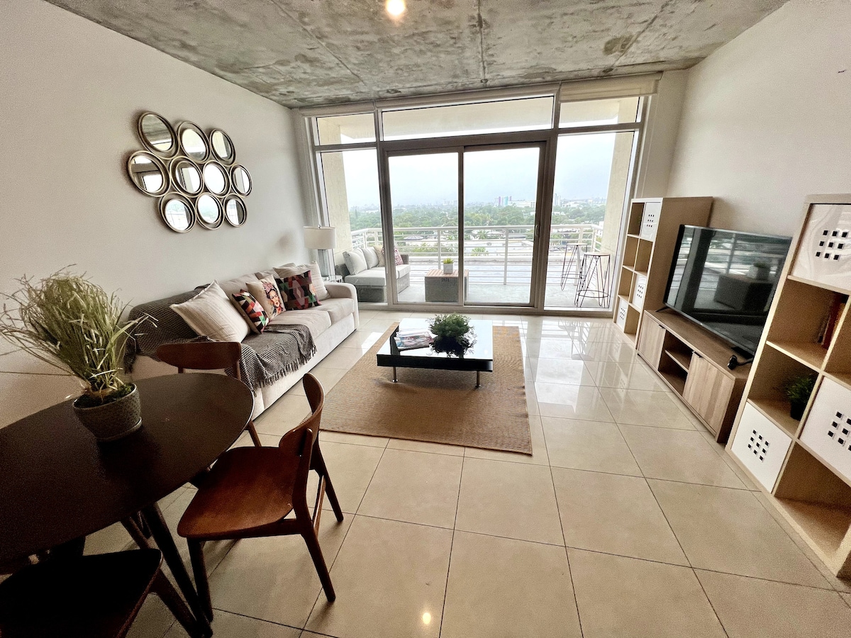 Elegante departamento boho | Piscina, estacionamiento y en el centro de Miami