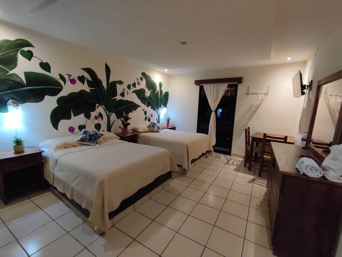 Las habitaciones son cómodas, limpias, espaciosas el lugar es muy tranquilo hay tienditas cerca y un comedor puede traer la comida al hotel