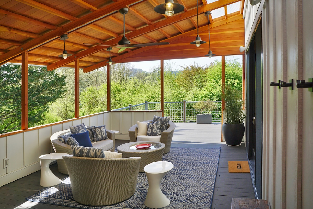 BIENVENIDOS Escondido entre los viñedos de Dundee Hills, nuestro moderno estudio de granja vintage ofrece una escapada tranquila a la región vinícola a pocos pasos de las salas de degustación de clase mundial. Tres bodegas excepcionales están a cinco minutos a pie: Lange Estate Winery, Torii Mor Winery y Olenik Vineyards, lo que hace de esta la base perfecta para un fin de semana relajado de degustación. Trip101 lo calificó recientemente como uno de los 10 mejores alojamientos en Airbnb en Dundee.