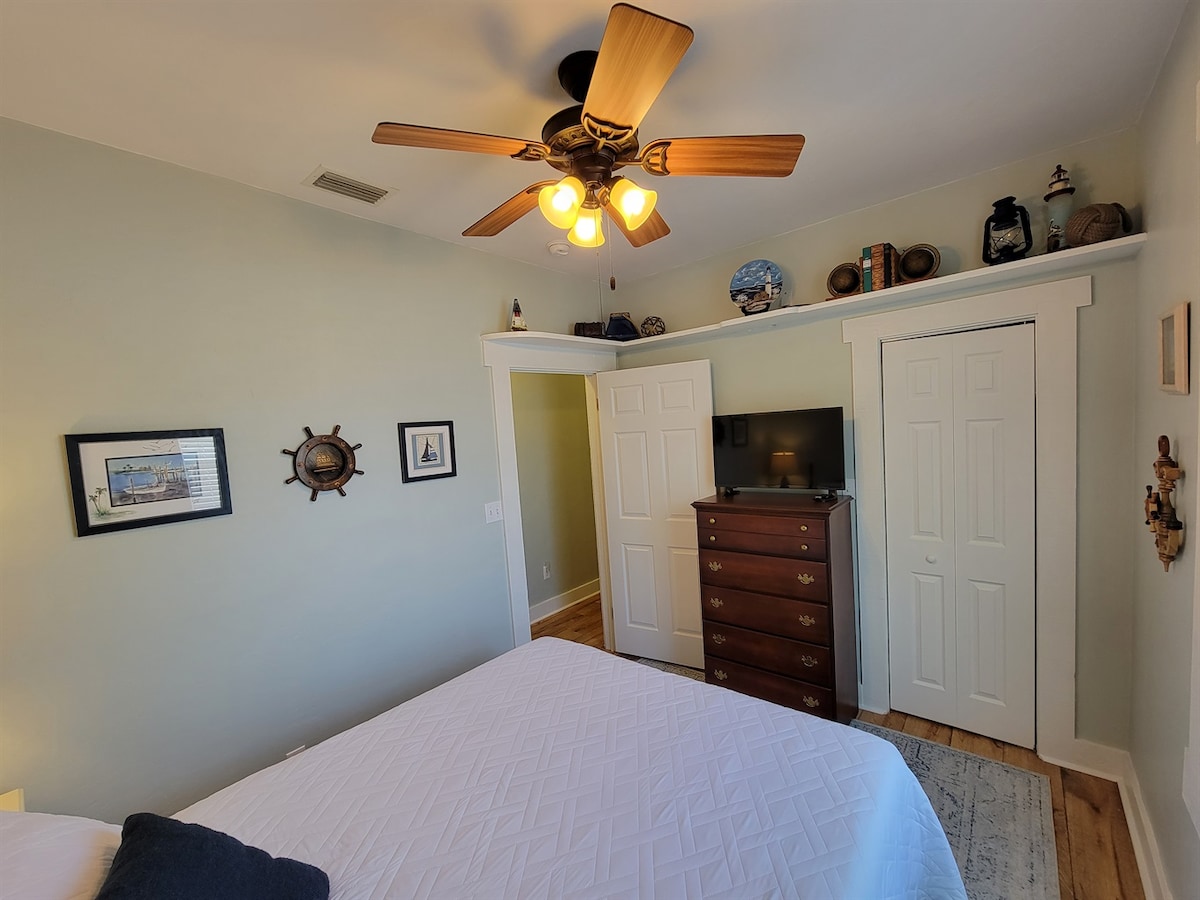 Esta casa de un dormitorio ofrece una cama tamaño queen y un sofá cama para dormir un total de 4 personas. La casa ofrece una rampa privada para botes, muelles y acceso rápido al golfo. Incluye wifi, 2 televisores, lavadora/secadora, chimenea, parrilla y cafetera. Disfruta de puestas de sol, paseos por la naturaleza y pesca desde los muelles. ¡Limpio, limpio, limpio! TODO se lava después de cada hospeda un huésped, incluidas sábanas, toallas, todas las mantas, edredones e incluso fundas de almohadas decorativas. Todas las manijas, pomos, mandos a distancia y ducha están desinfectados.