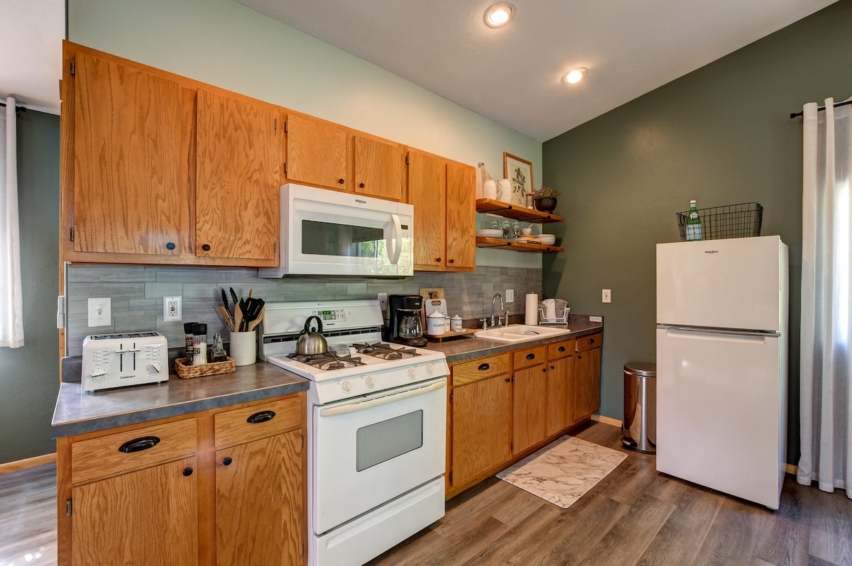 Ubicado en el corazón del centro histórico de Cottonwood, el estudio está a poca distancia a pie de cafeterías, restaurantes, salas de degustación de vinos y a pocos pasos del alquiler de bicicletas. Un estudio perfecto para relajarse y disfrutar de la hospitalidad de estilo retiro. Tu ubicación ideal al visitar Sedona, Jerome o incluso el Gran Cañón. El estudio está adosado a la casa principal y ofrece una entrada privada desde la calle, lo que garantiza una completa separación y privacidad para los huéspedes.