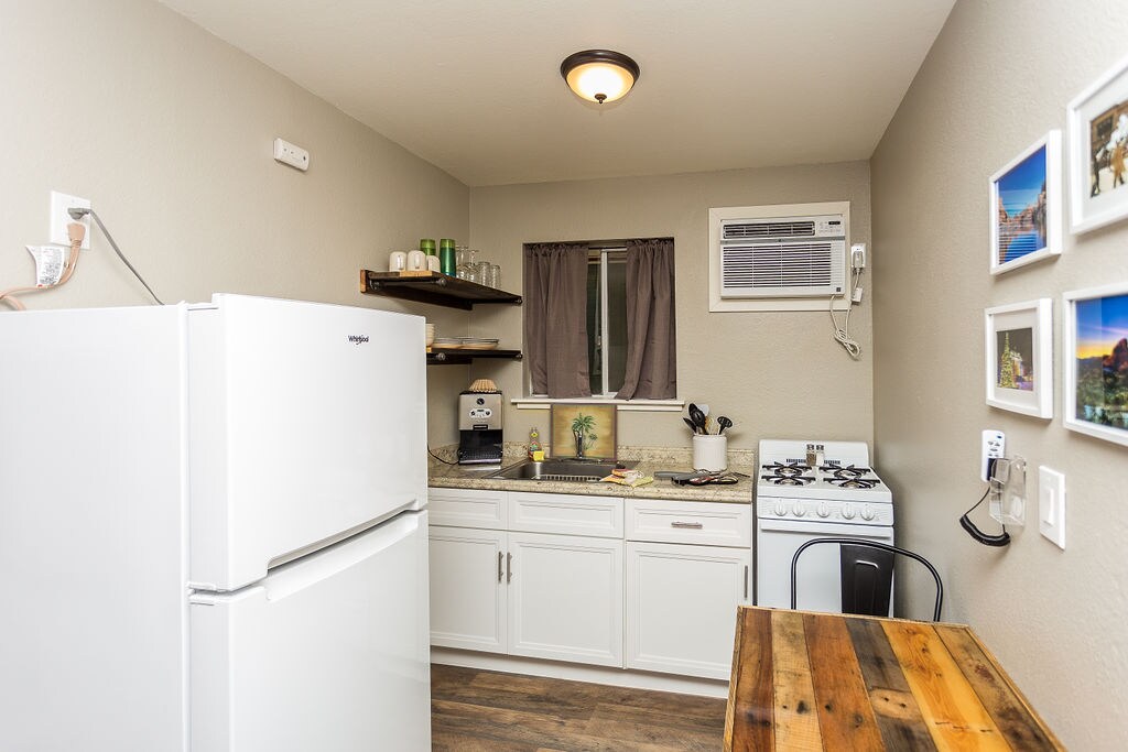 Acogedor apartamento tipo estudio en Bell Rock Inn en el corazón de Sedona, Arizona. Perfecto para el viajero moderno que busca un refugio elegante y conveniente en uno de los destinos más impresionantes del suroeste. Vive el sueño de Sedona en este encantador espacio con todas las comodidades de casa. Nuestro estudio cuenta con una cama tamaño king, 1 baño, una cocina pequeña y una amplia sala de estar con sofá cama. Capacidad para 4 huéspedes.