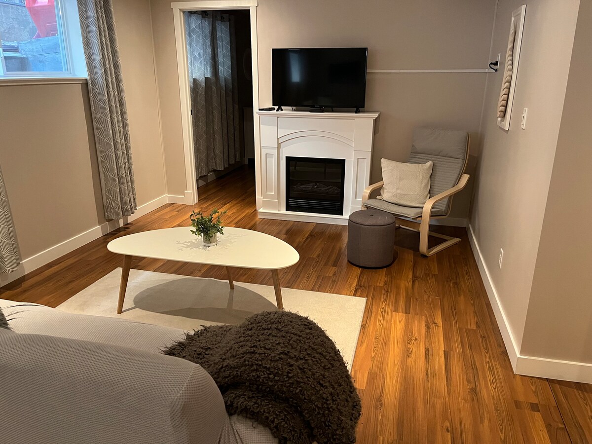 Disfruta de nuestra hermosa ciudad de montaña desde tu renovada, limpia y acogedora suite en el sótano. Tu gran apartamento de 1 dormitorio tiene una cama tamaño queen, una gran sala de estar, chimenea eléctrica, TV por cable y pantalla plana. Prepara comidas en la cocina totalmente amueblada, que incluye cocina y mesa de comedor. Relájate en la bañera profunda. Ubicado en el centro de un barrio tranquilo, a 5 minutos a pie del centro de la ciudad y de los senderos.
