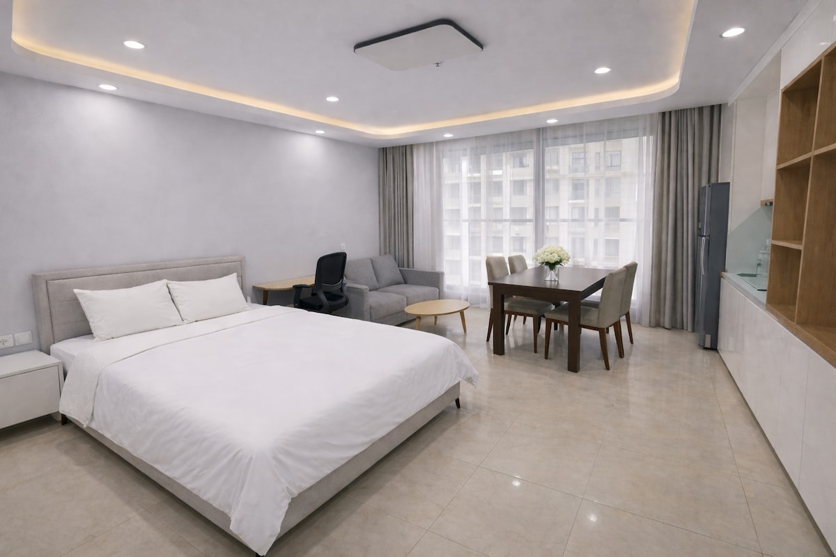 "DEPARTAMENTO DE SERVICIO EN ALQUILER - VINHOMES" ♪ Somos un sistema de cadena de apartamentos en alquiler (marca VINHOMES) que se opera y administra de acuerdo con el estándar hotelero de 5 estrellas. Es la opción perfecta para tu viaje de negocios de corta o larga duración ¿POR QUÉ NO ES HOTELERO? ♪ Fue difícil encontrar proximidad, comodidad y comodidad en un hotel. Pero aquí puedes encontrarlo Tampoco es difícil encontrar servicios públicos como: restaurantes, cafeterías, piscinas, cines,... a solo unos pasos de ti.