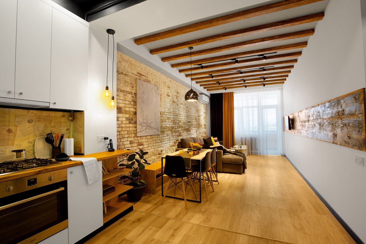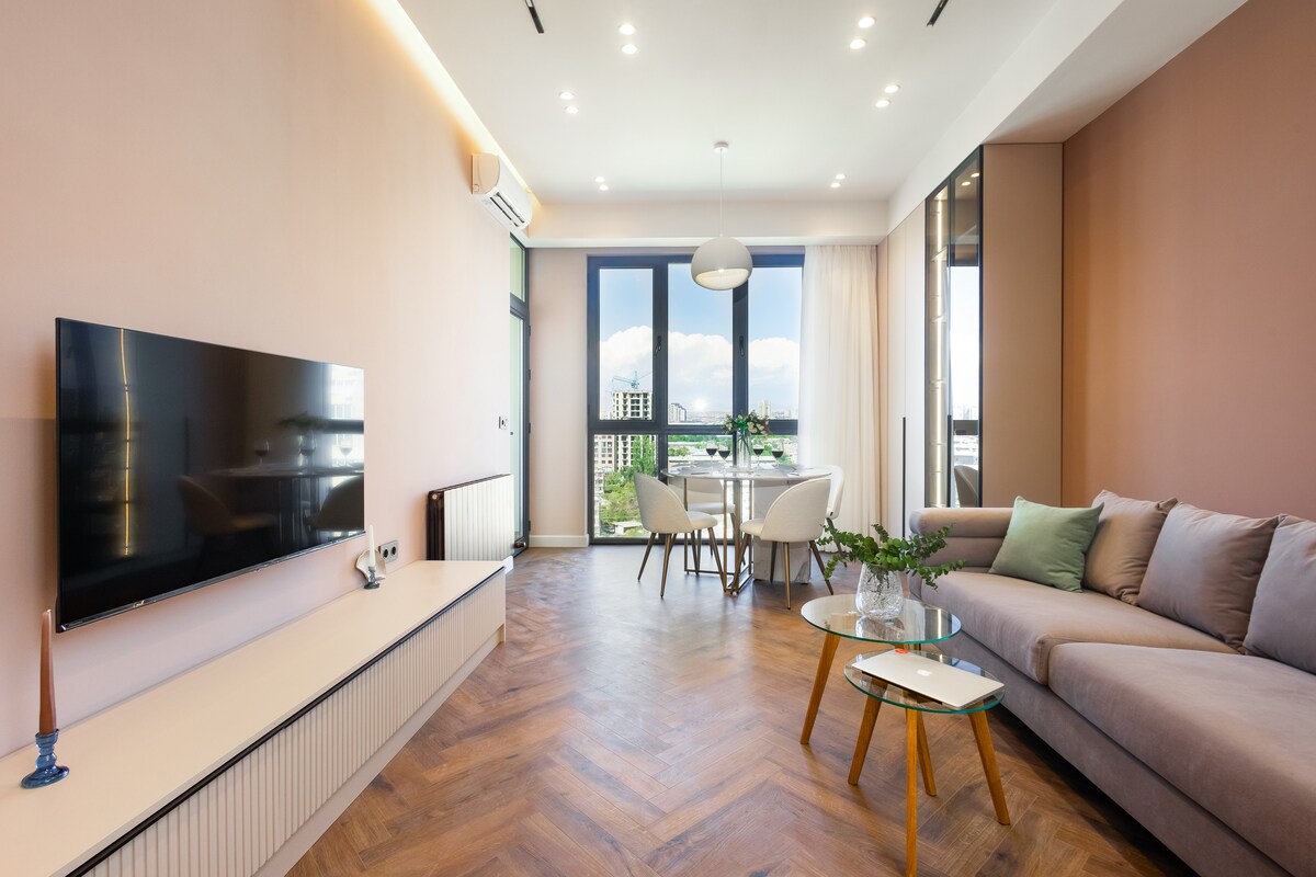 Agrega mi anuncio a tu lista de deseos haciendo clic ♥ en la esquina superior derecha: Llegada autónoma ◦ las 24 horas, los 7 días de la Piso ◦ 8/11 con ascensor ◦ 45 m² Balcón ◦ francés y vistas impresionantes Sistema ◦ de sonido ♫♫ ◦ Diseñadora hecha y amueblada TV ◦ inteligente, WIFI ☆ “¡Este alojamiento es una visita obligada!” Cocina ◦ totalmente equipada y surtida ☆ Junto al hotel Marriott, a un minuto de la plaza de la República. Fácil de encontrar, seguro y en la parte más céntrica del Ereván con famosas fuentes danzantes.