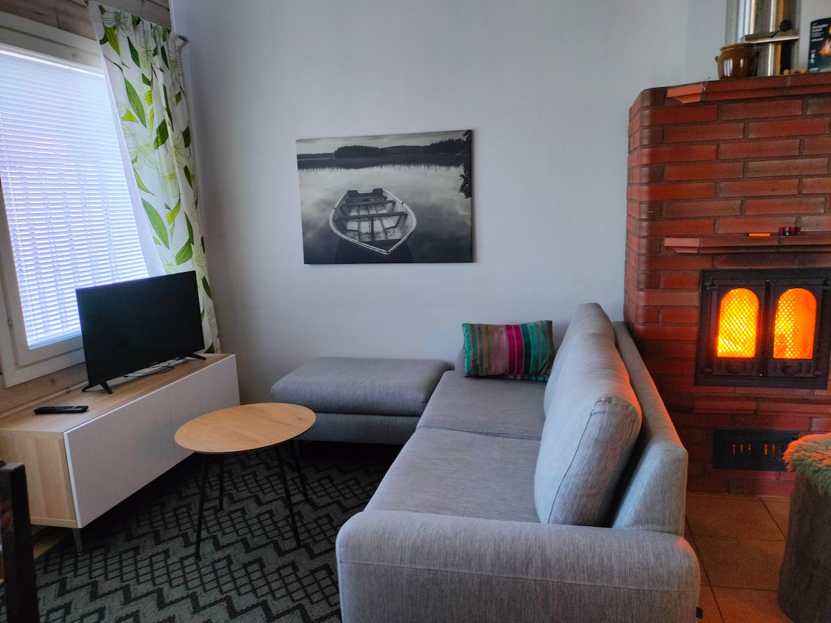 Relaxing modern summer cottage by the lake. Short driving 🚗 from Kuopio city. The cottage has an indoors modern sauna, stove, airconditioning, dishwasher, washing machine, heating, fireplace, all cooking equiptment. Everything you need to have a relaxing stay. There is a peer and boat free to use and barbeque/grill. shallow water so suitable for kids. Pets are allowed, but make sure to clean up after stay. Please note that cleaning up before leaving, and own linen and towels needed.