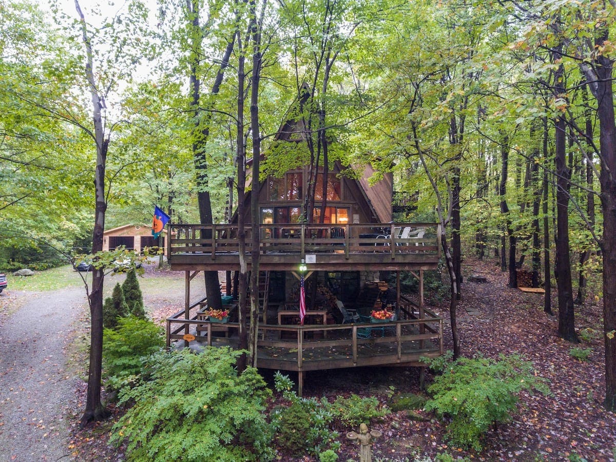 Hermoso chalet de montaña de 3 dormitorios, 3 baños y 3 pisos a solo 4 millas de Seven Springs Resort, senderismo, ciclismo y mucho más. Con sauna, estación de carga para vehículos eléctricos, chimenea, horno doble, lavavajillas y máquina de hielo. Bar con granito, terraza, chimenea de gas, tablero de dardos electrónico y hermosa mesa de ping pong. También una amplia selección de películas. Debes tener 25 años para reservar, se puede hacer una salida después de la hora establecida o una llegada anticipada o ambas si están disponibles por una tarifa de 65,00 USD o ambas por solo 130,00 USD, pregunta en el momento de la reserva. CAFÉ GRATIS.