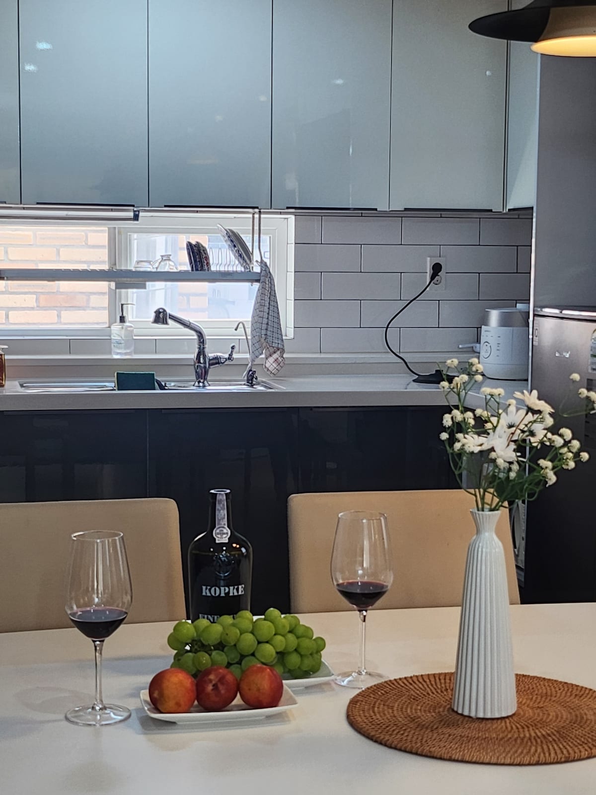 House for Rest tiene un interior que combina tonos blancos y de madera. Es un espacio con un ambiente cómodo y cálido propicio para la relajación. Una iluminación sutil y hermosa añade un toque natural que le ayuda a relajarse durante su estancia. Se encuentra en una zona residencial tranquila de Yucheon-dong. Puede pasar un rato tranquilo sin estar ocupado. Puede disfrutar de un paseo por el barrio mientras siente el encanto de las antiguas casas de Daejeon. Cerca se encuentra el mercado de Taepyeong, donde podrá disfrutar del ambiente local, y en los alrededores hay cafeterías, panaderías, tiendas de conveniencia y restaurantes para que pase un día agradable. El alojamiento consta de tres habitaciones, una sala de estar con comedor y una cocina. Puede ver Netflix y YouTube sin restricciones en un televisor inteligente de 55 pulgadas y con un proyector de alta calidad. Se proporcionan platos limpios y utensilios básicos de cocina para que pueda disfrutar de la cocina sencilla o de reuniones sin complicaciones. Con familia, parejas y amigos Tómese un descanso de su día de la manera más cómoda.