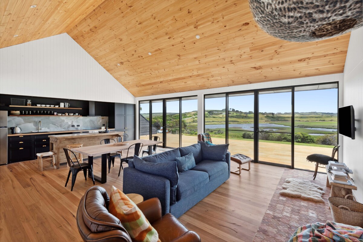 Wake above the Southern Ocean with uninterrupted views from every living space. Set on 27 private acres in the Otways, this is your own coastal retreat with a rainforest walk, waterfall and resident animals to hand-feed. Pets welcome inside with a large fully fenced garden. Guests say the views are even better than the photos. Solar-powered, rainwater-fed and EV-ready, this is off-grid living without compromise - connected when you want it, completely immersed when you don’t.