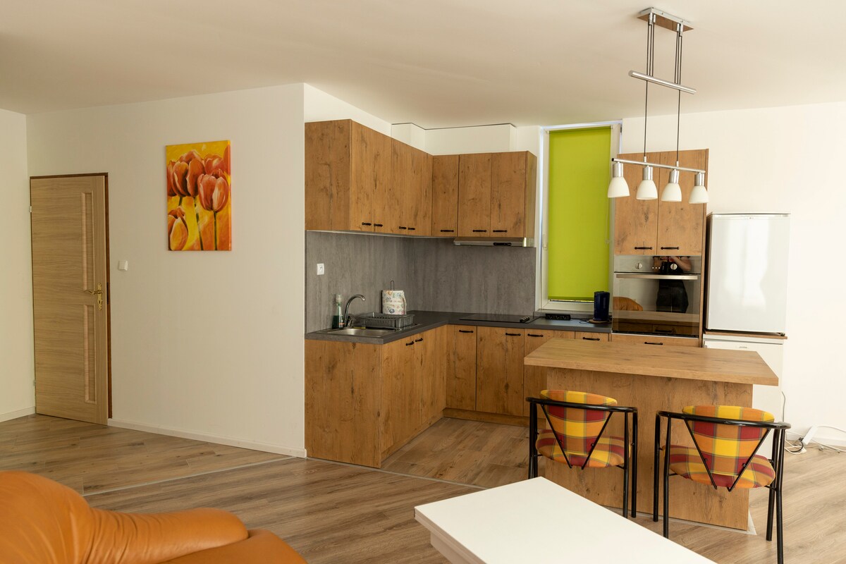 Enjoy a stylish experience at this centrally-located place. It's brand new Studio with everything you need around that location but with quite green view from the windows and the balcony. For you disposal there's fully equipped kitchen, modern bathroom with spacious shower, cozy little bedroom for two guest, comfortable sofa and also TV set available to watch from different angle around the main space. Great location allows you to enjoy the city with the best it can offer just by walk.