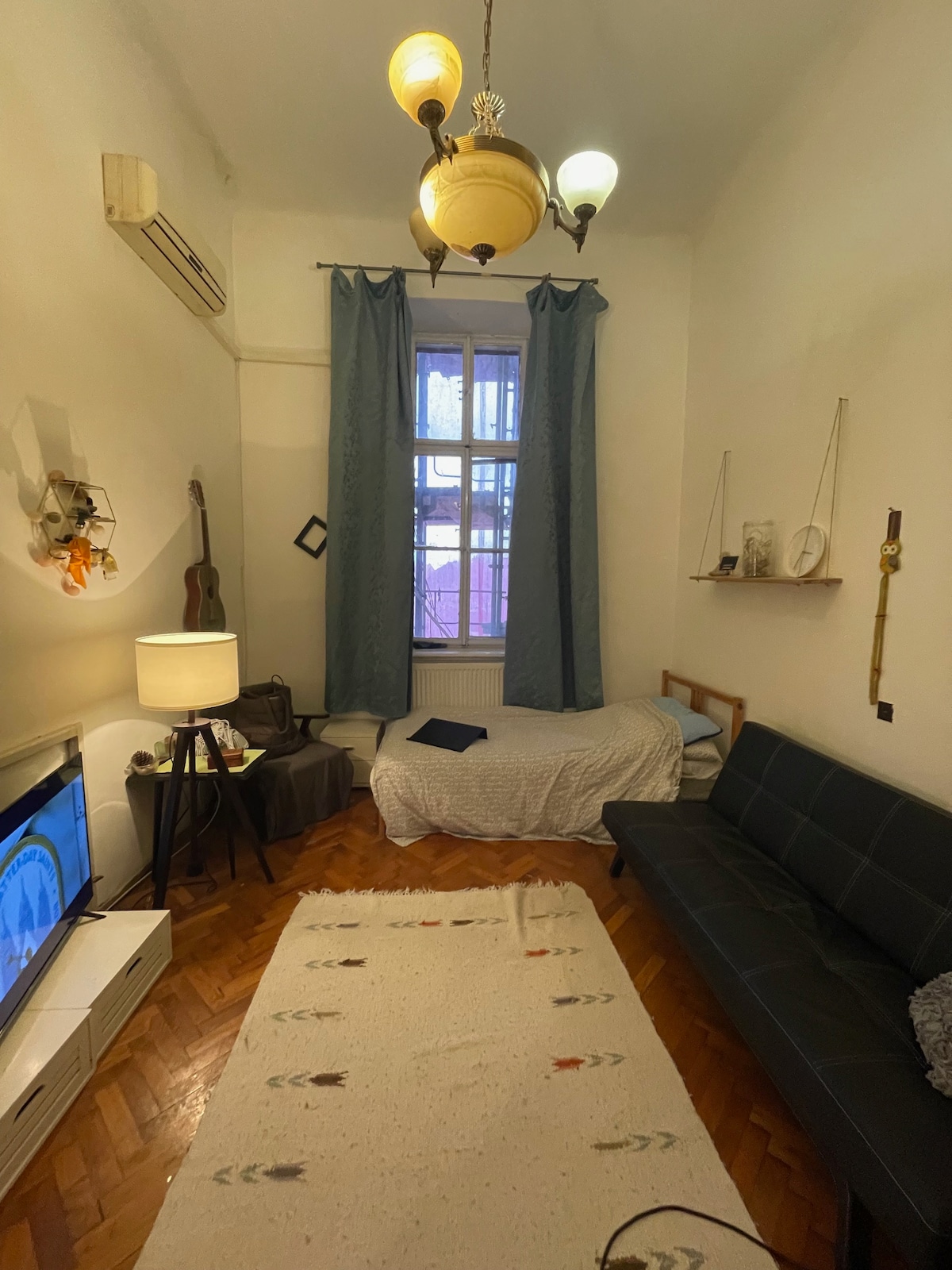 ¡Centro de la ciudad, pero muy tranquilo! Una característica especial del departamento que se encuentra en un edificio de patio trasero rodeado de un parque , que es muy raro. ¡Todo el ruido de la ciudad es tranquilo! Solo pájaros cantando. ¡El espacioso y luminoso apartamento también está lleno de grandes ventanas y techos altos! Una cama de galería tiene una escalera normal, no una empinada, y no tendrás que doblarla. Debajo de la cama de la galería hay un vestidor. La cocina es pequeña pero está totalmente equipada .