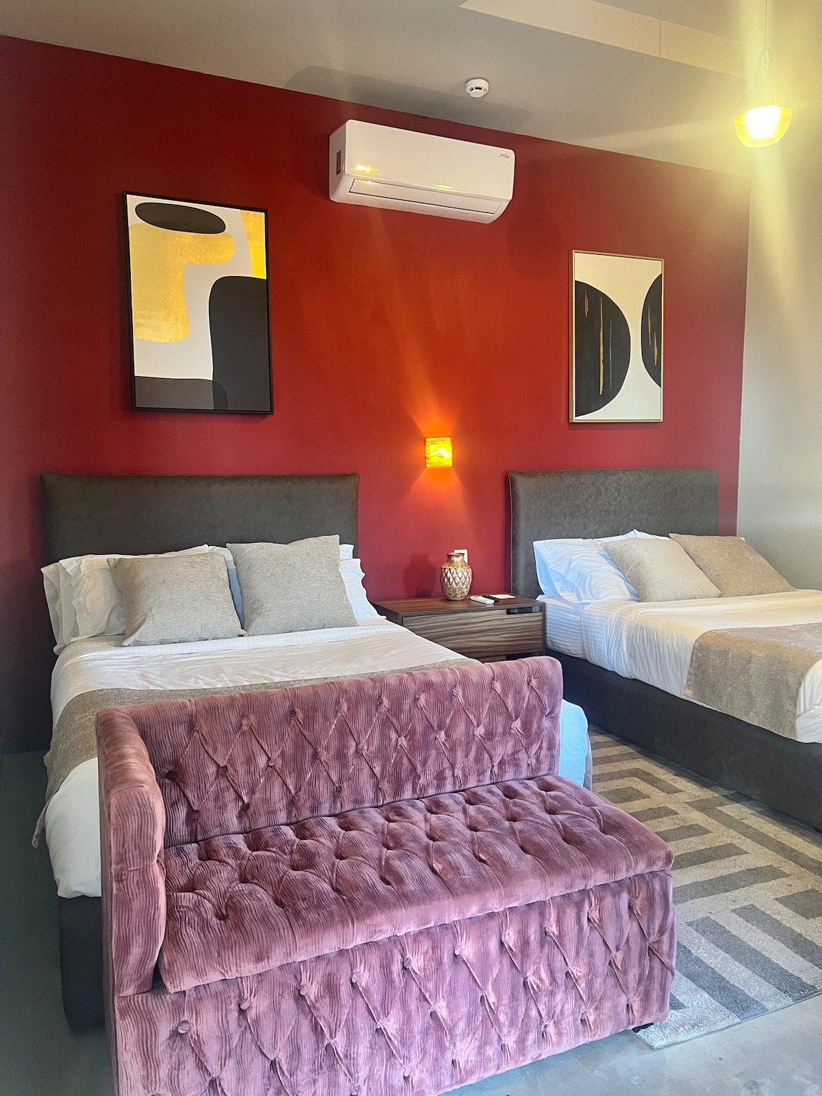 Hospédese con la confianza de AR SUITES, símbolo de excelencia y hospitalidad en Zamora. Este amplio y elegantemente departamento ofrece el equilibrio perfecto entre confort y estilo. Disfrute de un descanso incomparable con colchones, almohadas y sábanas de alta calidad, y mantenga la temperatura ideal con aire acondicionado. Ubicado muy cerca del Santuario, sobre La Calzada, la avenida más bonita, segura y con mayor comercio, podrá moverse caminando a todos sus destinos. (Sí facturamos.)