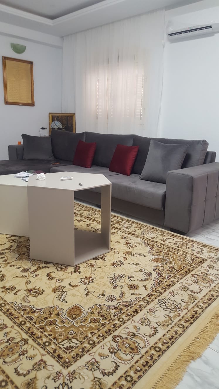 Passez un agréable séjour dans cet hébergement confortable à Sousse dans un quartier tranquille (Hay riadh) Appartement meublé et climatisé. 1 chambre avec lit deux places (possibilité d’ajouter des matelas en fonction du nombre de personnes) -Surveillance vidéo -Épiceries et magasins à proximité -3min à pieds de la station Taxi -5min en voiture du centre ville -8min en voiture de la plage