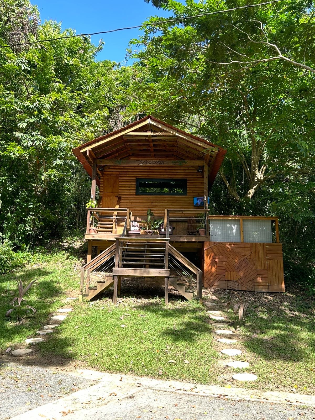 Ubicada en las estribaciones de la selva tropical El Yunque de Puerto Rico, esta hermosa cabaña ofrece una experiencia única y serena en la naturaleza sin sacrificar las comodidades de la vida cotidiana. Equipado con aire acondicionado, WiFi, una cocina completa y jacuzzi, es posible que solo desees quedarte mucho más allá de la fecha de salida. La cabaña se encuentra en medio de una hermosa propiedad lejos de cualquier tipo de ruido y contaminación lumínica, lo que te permite relajarte adecuadamente y pasar un rato inolvidable con tus seres queridos.