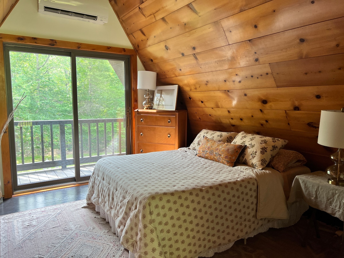 Este encantador refugio en forma de A, ubicado en un vecindario boscoso entre Saugerties y Woodstock, le dará la bienvenida y le reconfortará el alma con su encanto. Con 2 dormitorios, cada uno con camas queen, y un sofá que se despliega para convertirse en una cama completa, hay espacio de sobra para 4 personas. Sin embargo, también es un refugio tranquilo para una persona o una pareja. Esta casa, un refugio creativo e inspirador, ofrece hermosas vistas y cuenta con un piano eléctrico. ¡Tranquilo, pero a 10 minutos de excelentes restaurantes! A 11 minutos de HITS y a 30 minutos de Hunter Mountain.