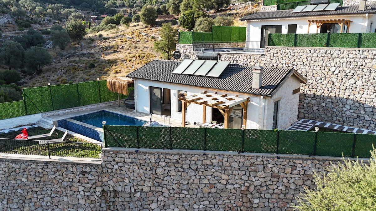 Casa de piedra con piscina y jacuzzi con vistas a la bahía de Kabak