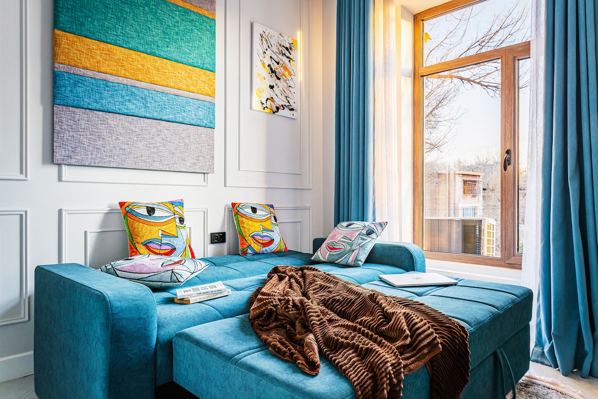 Welcome to a cozy and stylish 30 m² studio, once the art workshop of painter Gayrat Baymatov. The apartment is located in a truly unique building, where artists still live and create on every floor. Within just a 5-minute walk you’ll find: • Buyuk Ipak Yuli Metro Station • A local bazaar with fresh fruits, vegetables, and family-run cafés • “Belissimo” pizzeria • “Breadly” serving delicious breakfasts No curtains on large windows (as shown in photos).